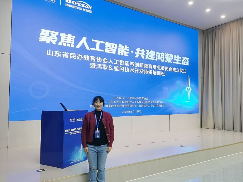 为紧跟万物互联时代技术发展趋势,推动人工智能与创新教育深度融合,加强鸿蒙生态人才培养,2026年1月16日至18日,由山东省民办教育协会主办的“人工智能与创新教育专业委员会成立仪式暨鸿蒙&星闪技术开发团队培训班”在济南黄河数字人才公共实训基地成功举办。公司bv伟德国际1946骨干教师付娜参加此次培训,深入学习了鸿蒙与星闪前沿技术,为公司相关课程建设与人才培养注入新动力。