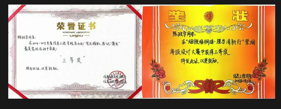陈政宇始终以“以赛促学、以赛强能”为目标,主动投身各类学科竞赛,在实战中锤炼专业本领、激发创新潜力。