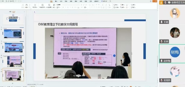 赵树梅老师以知识图谱构建为切入点,系统阐述了如何通过数字化工具梳理学科知识体系,明确课程目标与毕业要求的对应关系,为OBE理念落地提供技术支撑。王琳老师则聚焦OBE理念下的教学大纲撰写,强调大纲应突出“员工中心、产出导向、持续改进”原则,明确学习成果、评价标准和能力要求,使教学进程可衡量、可达成。王璐老师通过具体案例展示了OBE教学设计的方法,包括基于能力目标的反向课程设计、分层教学策略及多元化评价体系,体现了“教—学—评”一致性的核心思想。
