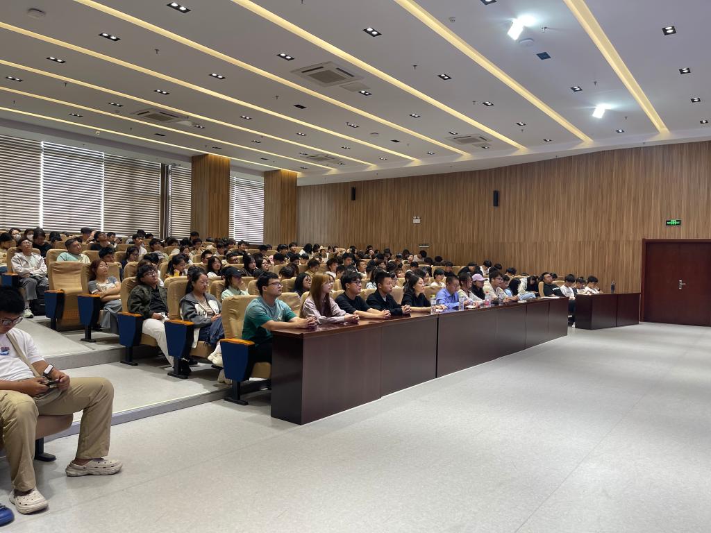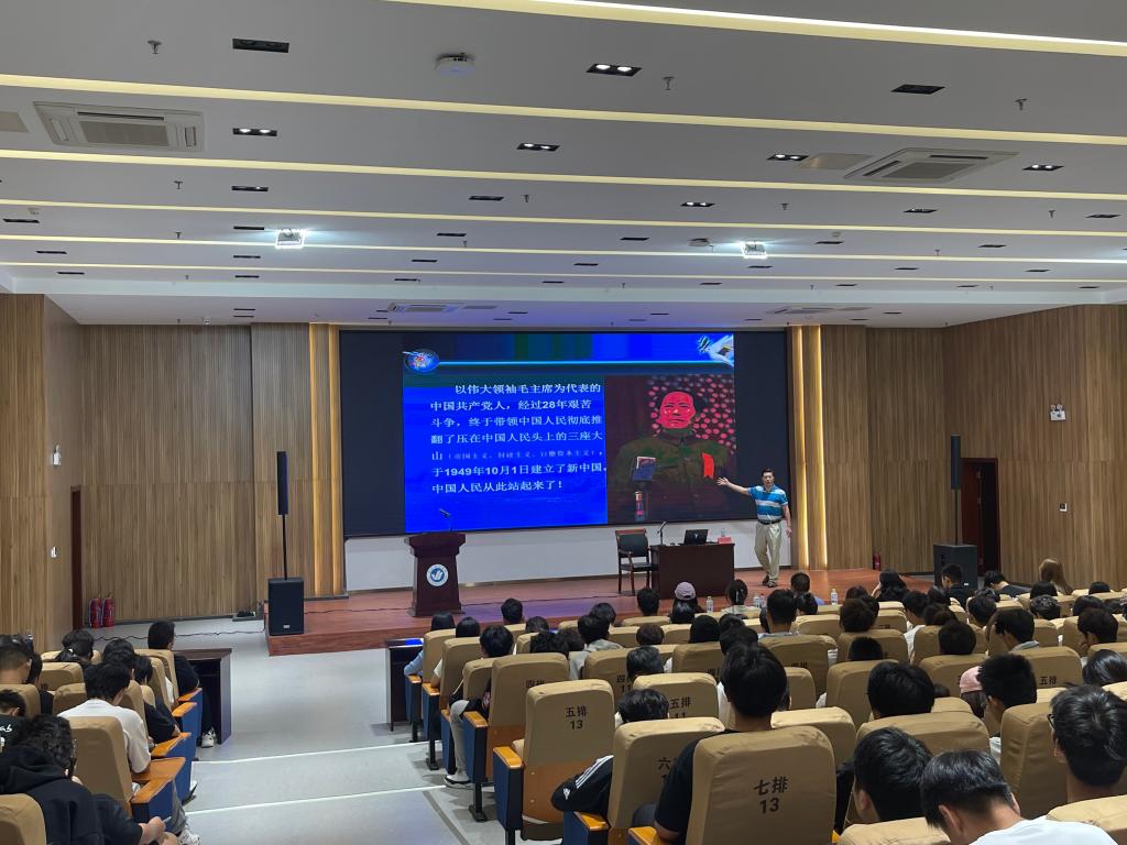 讲座伊始,盖玉华博士结合自身履历,以“国防与青年成长”为切入点,深入阐述了国防教育在老员工树立家国意识中的重要作用,激发了在场新生的强烈共鸣。随后,他围绕“勿忘历史、面向未来、仰望星空、脚踏实地、找准基点”五大核心维度展开讲解。他回顾了中国悠久的历史文化和近现代发展历程,强调了国家的崛起与自强的重要性,鼓励员工们要深刻认识到国家的繁荣离不开每个人的共同努力。在谈及“面向未来”时,盖老师用详实的数据展示了我国在经济、工业和科技领域取得的显著成就,并提醒新生要保持清醒的头脑,既要自信,又要不断努力,迎接未来的挑战。在“仰望星空”部分,盖老师鼓励同学们树立远大理想,并以航天员邓清明的事例说明,理想需要坚定的信念和不懈的追求,激励新生勇敢追梦,敢于担当。在“脚踏实地”和“找准基点”部分,盖老师结合老员工的成长路径,提出了要以“刻苦学习”为核心,全面提升思想素质,夯实专业基础,培养创新意识,并通过持续的努力实现个人目标。他还分享了华罗庚在数学研究上的事例,强调了勤奋和坚持的重要性。最后,他希望全体新生能以此次讲座为契机,将爱国情、强国志转化为报国行,在大学阶段找准方向、脚踏实地,成长为担当民族复兴大任的时代新人。