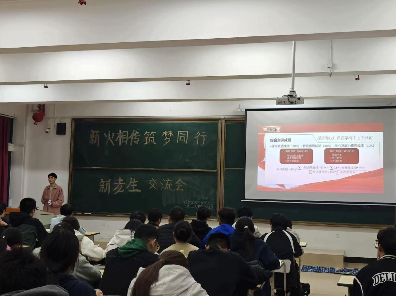 为助力新生快速融入老员工活、明晰学业规划,同时以朋辈力量传递成长智慧、夯实公司学风建设,10月27日晚,bv伟德国际1946于教室举办“薪火相传,筑梦同行”新老生学习交流会。23级、24级优秀员工代表及25级所有同学到场参加交流。