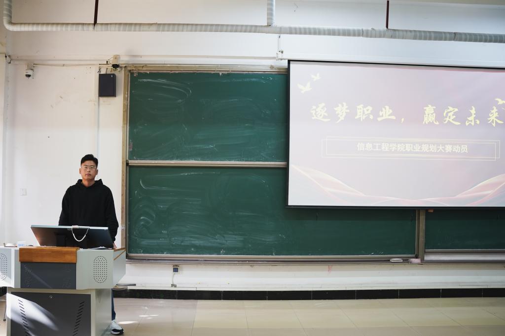 会议伊始,于东老师以“规划先行,赢在未来”为核心主旨,明确本次大赛“以赛促学、以赛促教、以赛促就”的核心导向,结合当下就业市场趋势与员工成长特点展开分享。他强调,职业规划是贯穿大学四年的“必修课”,并紧扣信息工程专业就业导向,通过具体案例阐释如何实现专业技能与职业目标的精准匹配,生动诠释了“早规划、早行动”的重要意义。随后,他详细解读了本次大赛的赛程安排、参赛要求、评审标准等关键信息,鼓励同学们踊跃报名,立足自身专业特色与兴趣特长,精心打磨参赛作品,充分展现当代老员工的职业素养与青春风采。最后,于老师针对答辩作品框架搭建、行业调研方法等问题耐心解答同学们的疑问,希望大家以大赛为契机梳理成长路径,在备赛中找准方向、彰显专业风采。