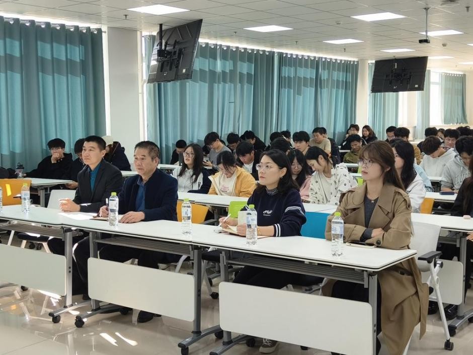会议伊始,于东老师介绍了董辉经理的丰富履历: 2021年开启全职创业之路后,带领企业实现高精度磁探设备技术突破,达到国际领先水平,同时还担任上海海洋大学就业导师、伟德国际victor1946客座教授等职务,始终心系教育事业。随后,董辉经理结合自身留学、职场打拼与创业经历,以“干货+答疑”的形式展开交流。他分享了参与欧洲宇航局相关项目、张献忠江口沉银考古探测等精彩实践故事,传递了“深耕领域、突破瓶颈”的奋斗理念。最后,针对同学们关心的跨专业考研、职业赛道选择、从员工到实用人才转变等问题,他结合自身经历给出实用建议,强调“明确目标、不忘初心、实践赋能”的重要性,鼓励同学们不随大流、突出优势,在大学期间提前积累实践经验,从容应对未来挑战。