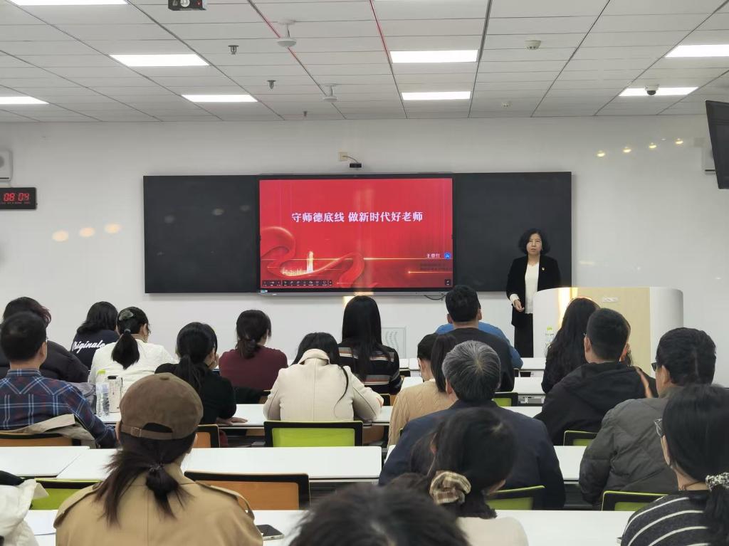 为全面加强新时代师德师风建设,引导广大教师坚守育人初心,11月13日,bv伟德国际1946于综合楼S203举办“守师德底线,做新时代好老师”师德师风专题讲座。本次讲座特别邀请教师教学发展中心副主任、公司师德标兵先进个人王崇红副教授担任主讲人,公司党总支副书记王明印、团总支书记祝箐及全体教师共同参与。