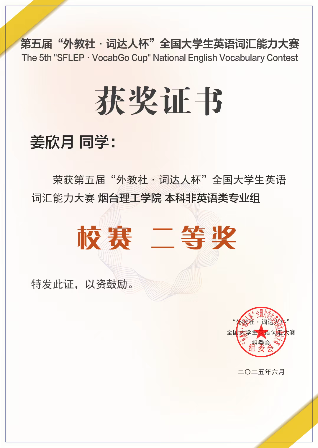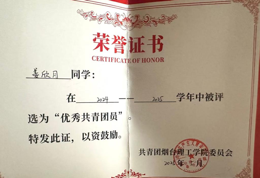 在学习上,姜欣月坚信“付出就会有回报”,她积极上进,凡事以“恒”字打底,坚持做到恒复盘、恒拓展、恒输出。脚踏实地的付出终有回报,她在2024-2025学年取得专业第二名的佳绩。在班级里踊跃付出、积极奉献,学工助理岗位上矢志奋斗、勇担职责,在出色完成工作的同时,更在学习方面严格要求自己。最终凭借优异表现斩获国家奖学金、优秀共青团员、优秀学工助理、优秀员工荣誉称号等诸多奖项。
